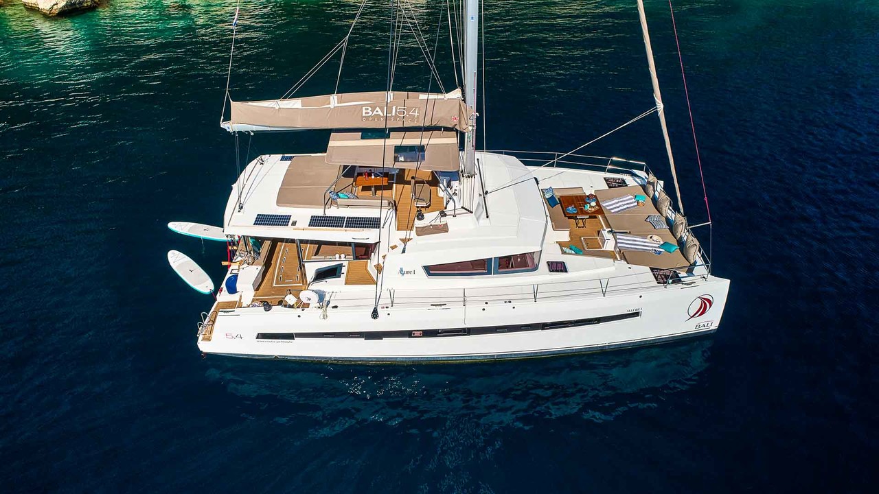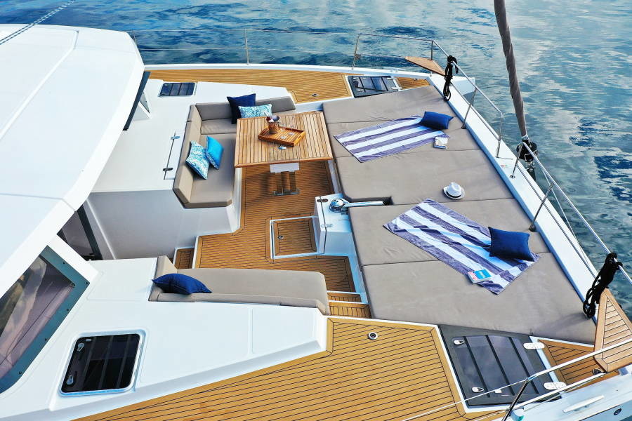 INCLUDED IN PRICE: • 2 crew members (CAPTAIN & STEWARDESS), Daily preparation of 2 meals: breakfast and SIMPLE lunch OR dinner • Water toys & equipment: rib (3.80 m) with 25 HP motor, 4x Stand Up Paddle boards, snorkeling equipment, inflatable water beds • 13% VAT